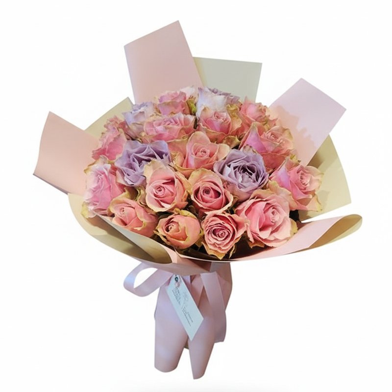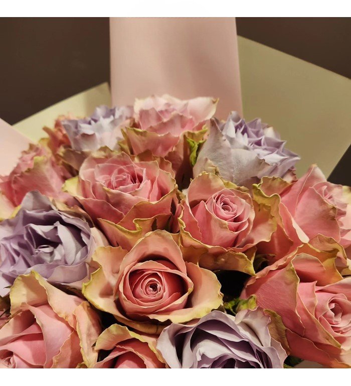Pastel pembe ve lila tonlarının en zarif birleşimi… Belle Amour, aşkın en narin hâlini anlatan özel bir deluxe gül buketidir.