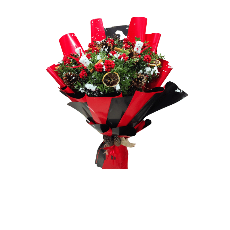 Bu özel buket, kışın büyülü atmosferini ve yeni yılın coşkusunu evinize veya sevdiklerinizin yaşam alanına taşıyor. Kırmızı ve yeşilin çarpıcı uyumuyla hazırlanan bu buket, mevsimin tüm sıcaklığını ve neşesini yansıtıyor.”Büyülü Kış Buketi,” soğuk kış günlerine sıcaklık, neşe ve yılbaşı coşkusu katmak için özenle tasarlandı. Bu buket, doğanın kış aylarındaki zenginliğini ve tatil sezonunun samimi atmosferini bir araya getiriyor. Evine, ofisine veya sevdiklerinin yaşam alanına anında bir “Hoş Geldin Kış” hissi katmak isteyenler için mükemmel bir seçim.