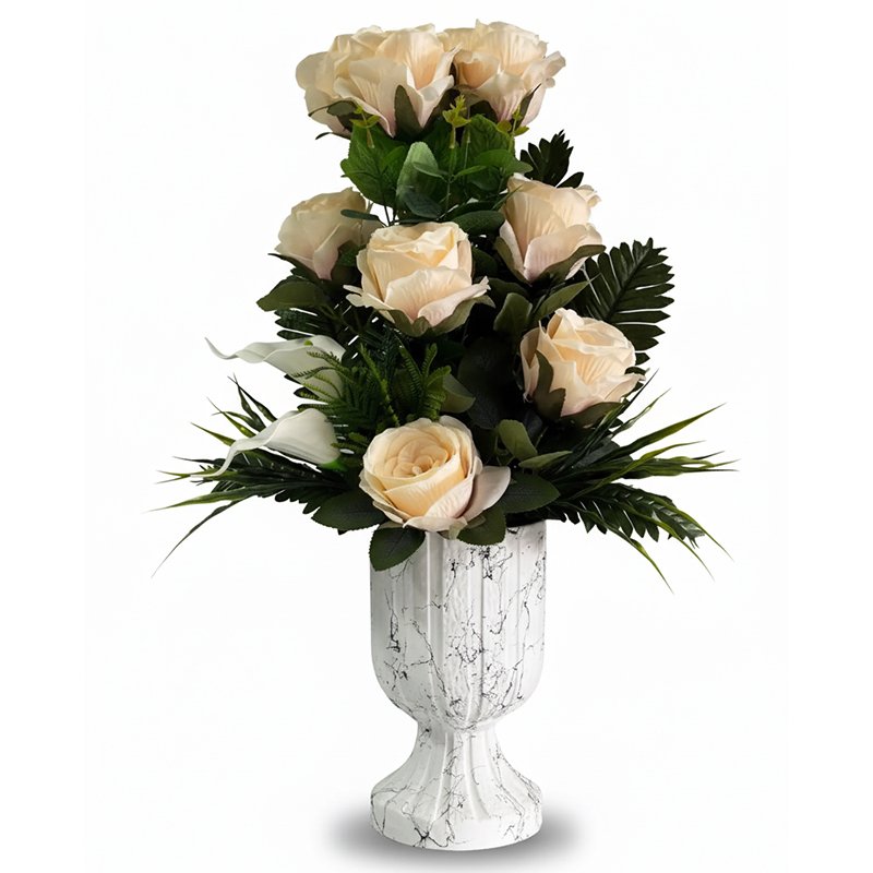 Krem Güllü Mermer Desenli Şık Yapay Çiçek Aranjmanı