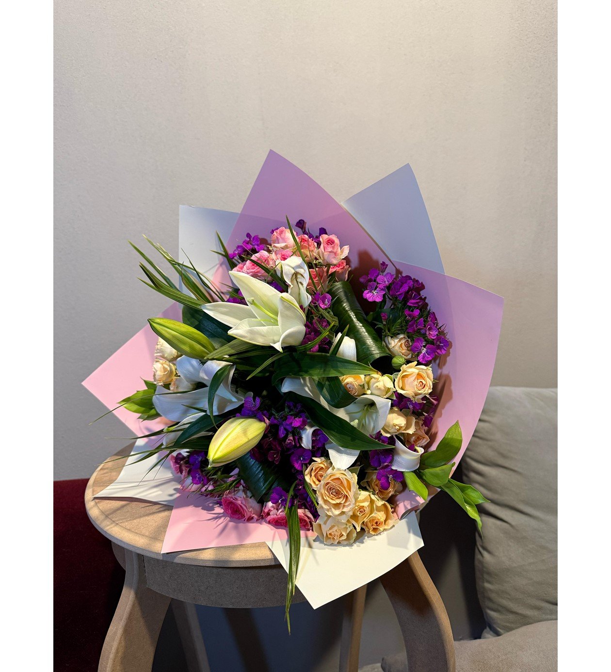 Luna Vibes – Lilyum & Gül Buketi, beyaz lilyumların saf zarafetini sarı güllerin sıcak tonları ve mor çiçeklerin büyüleyici enerjisiyle birleştiren özel bir tasarımdır. Doğal duruşu, ferah kokusu ve renkleriyle hem romantik hem de pozitif bir hediye arayanlar için mükemmel bir seçimdir. Doğum günleri, kutlamalar, tebrikler ve içten teşekkürler için modern ve zarif bir alternatif sunar. Ev ve ofis ortamlarına da anında canlılık katan göz alıcı bir aranjmandır.
