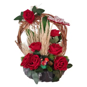 Özel günlerin unutulmaz kahramanı olacak bu aranjman, zarafeti ve doğallığı bir araya getiriyor. Beyaz mermer desenli şık seramik vazosunda sunulan 7 adet canlı görünümlü kırmızı gül, sadakati ve derin sevgiyi simgeliyor.