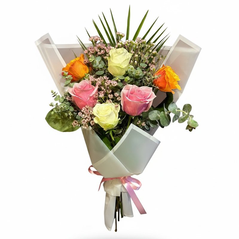 Canlı renklerde güllerle hazırlanan enerjik ve neşeli özel buket.