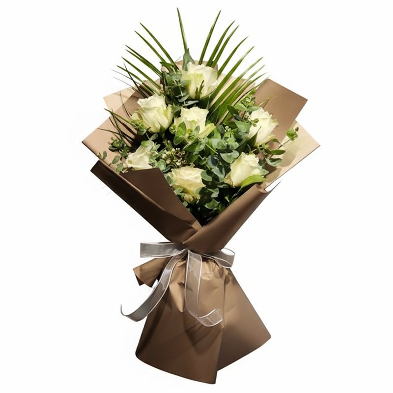 Royal Cream – 7’li Beyaz Gül Buketi, sadelik ve şıklığı aynı anda taşımak isteyenler için özenle hazırlanmış bir aranjmandır. Her biri özel seçilmiş taze beyaz güller, doğal yeşillikler ve modern kraft ambalaj ile bir araya getirilerek kusursuz bir görünüm oluşturur.