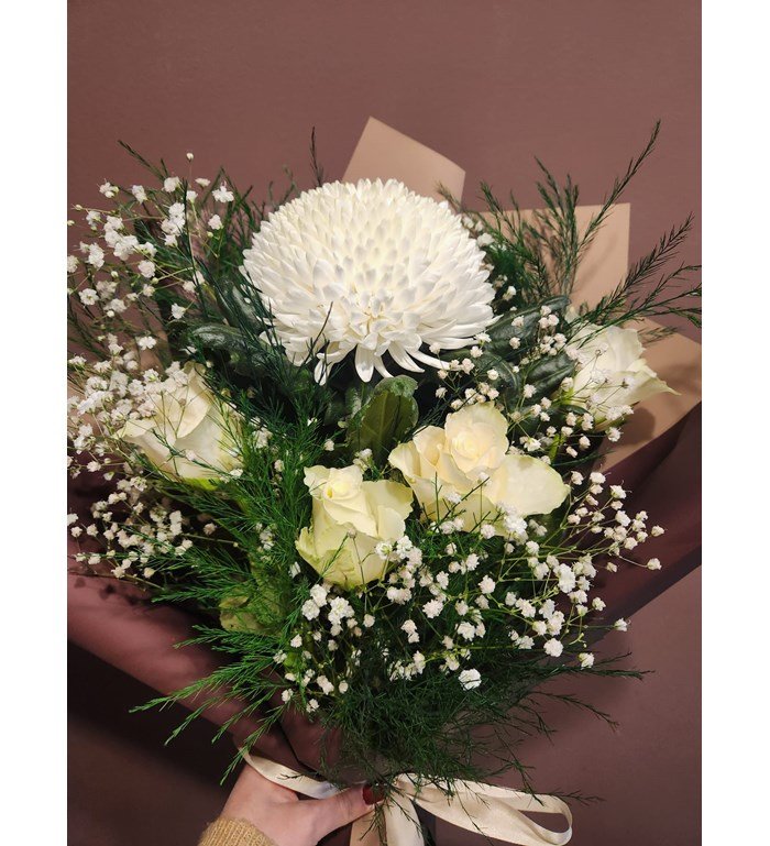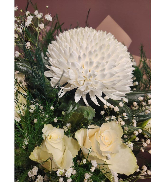 Zarafetin en saf hâli… Beyaz anastasia ve beyaz güllerin kristal bir uyumla buluştuğu bu özel buket, her özel güne anlam ve şıklık katmak için tasarlandı. 1 Adet beyaz Anastasya, 4 adet beyaz gül bulunmaktadır.